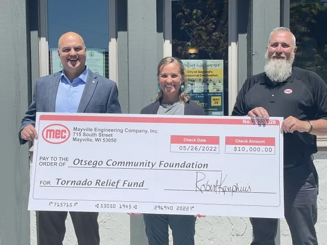 With the county already experiencing a housing shortage, families that have been displaced from their homes are being lodged in local hotels. Some whose workplaces have been destroyed are commuting to sister businesses 40 minutes or more away. MEC donated $10,000 to the Otsego Community Foundation’s Tornado Response Fund to help impacted community members with housing, food, employment and other challenges.